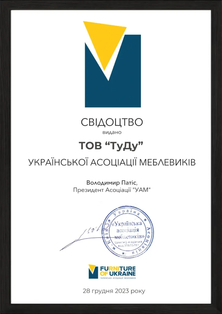 ToDo ist seit kurzem offizielles Mitglied des ukrainischen Verbands der Möbelhersteller (UAFM), der größten Berufsgemeinschaft, die ukrainische Möbelunternehmen vereint. Die Organisation besteht seit 2001, vereint mehr als 330 Mitglieder und hat sich zum Ziel gesetzt, die Möbelindustrie durch Zusammenarbeit, Erfahrungsaustausch und Unterstützung von Innovationen zu entwickeln.