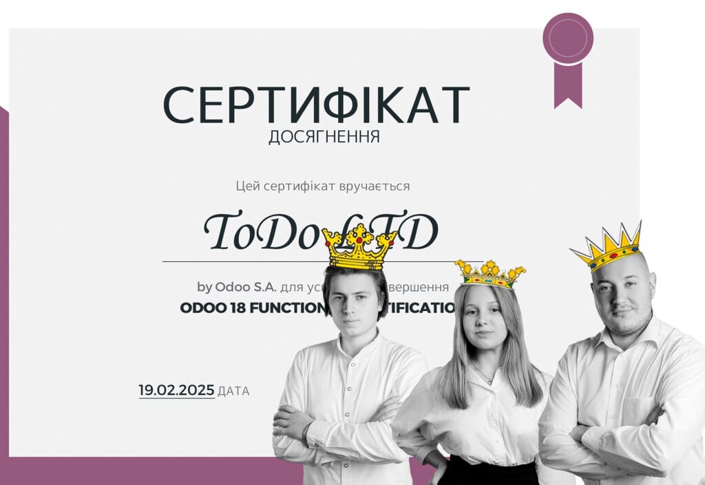 System ERP Odoo » Bloga » ToDo jest pierwszą firmą w Ukrainie, która uzyskała certyfikat Odoo 18